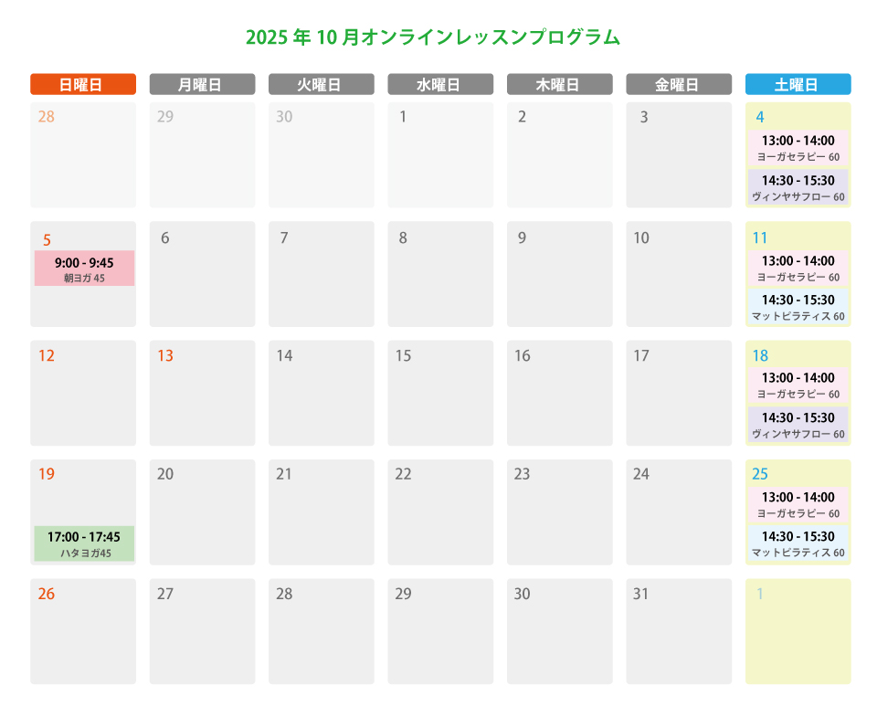 2025年10月のスケジュールをご確認ください。
