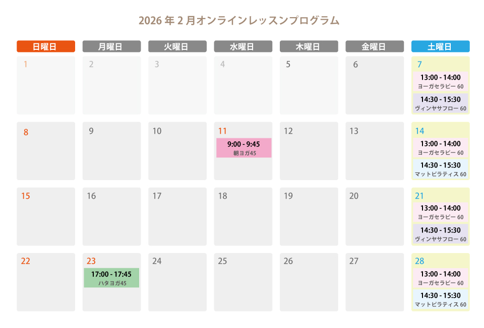ヨーガセラピー 2026年1/31日(土) 13:00-14:00