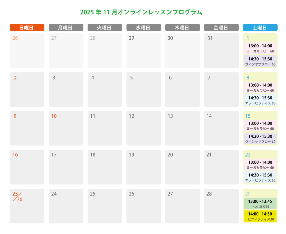 2025年11月分のヨーガセラピー4レッスン/3,300円